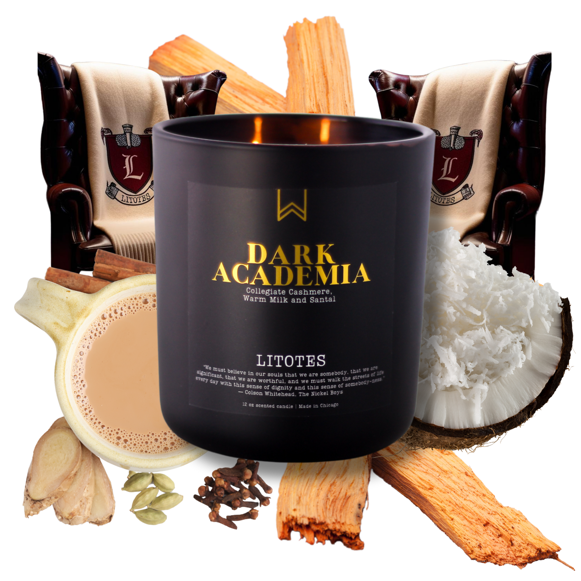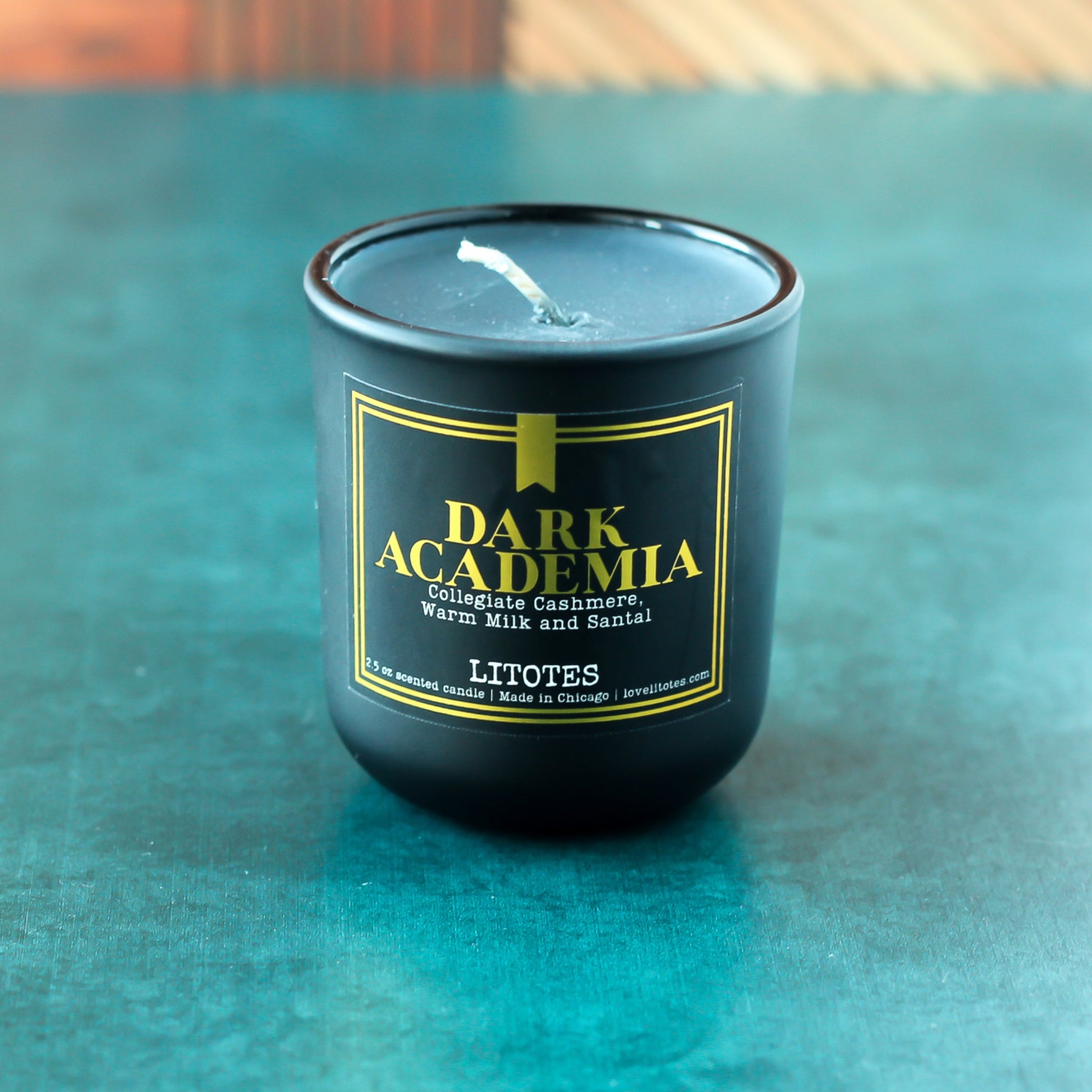 Experience the cozy embrace of cashmere and warm milk, complemented by the captivating depth of sandalwood. Rich black wax poured within a sleek black vessel; Dark Academia is our first onyx-hued candle. Sophisticated and seductive, this scent evokes late nights in libraries, handwritten letters, and secrets preserved by the dark.