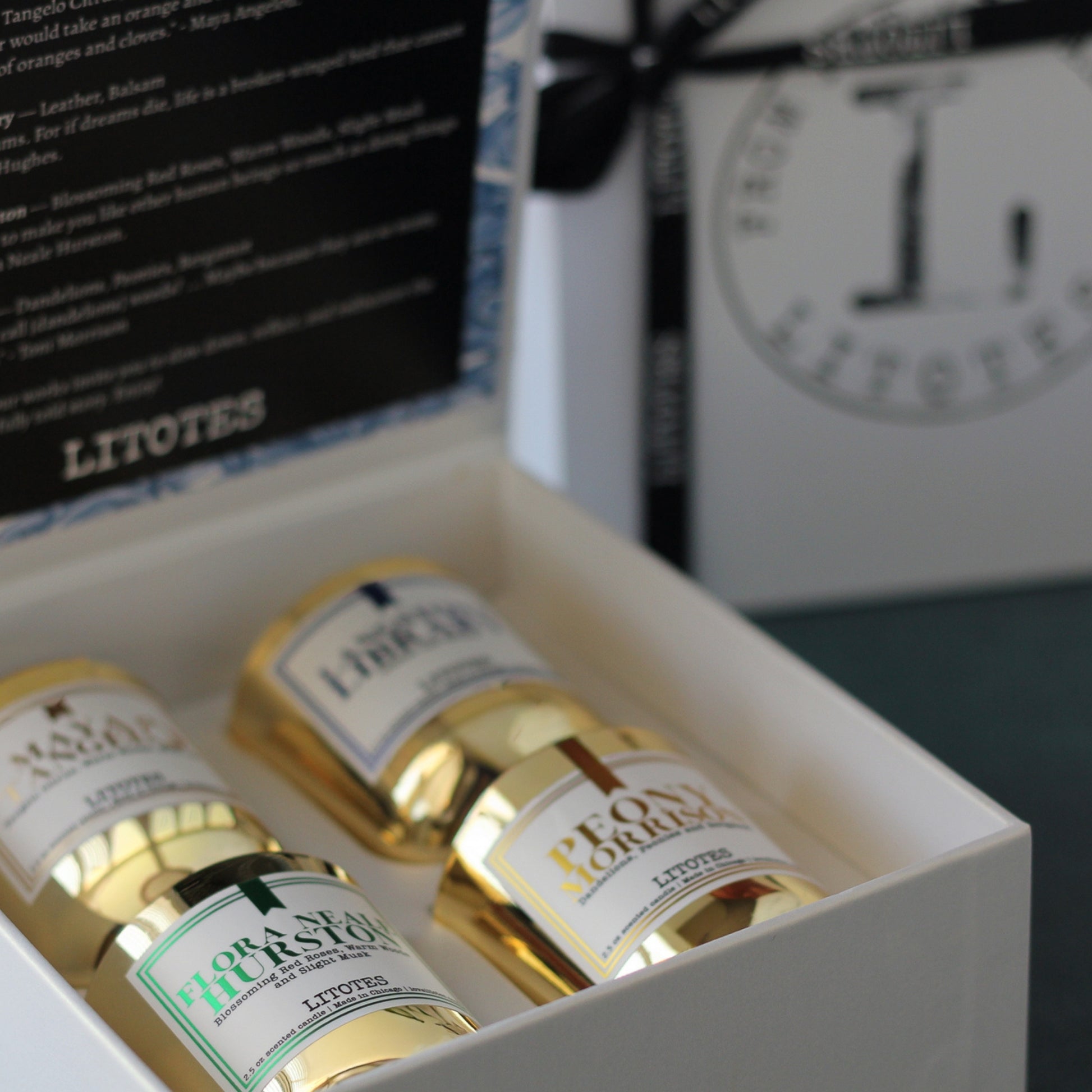 Discover the spirit of storytelling with The Authors, a curated gift set featuring mini 2.5 oz editions of all four Litotes signature author-inspired fragrances. Thoughtful, elegant, and steeped in literary heritage, this collection invites you to explore the worlds of four iconic voices—each translated into scent with care, imagination, and reverence.